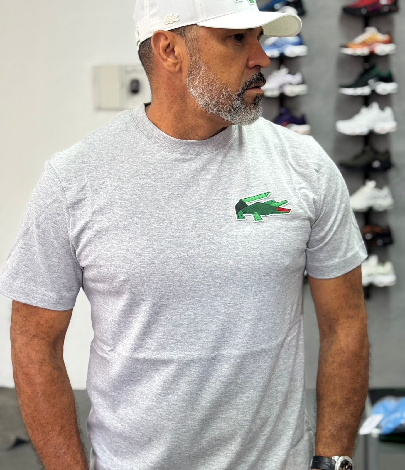 Camiseta Lacoste de Algodão Pesado(Cinza)