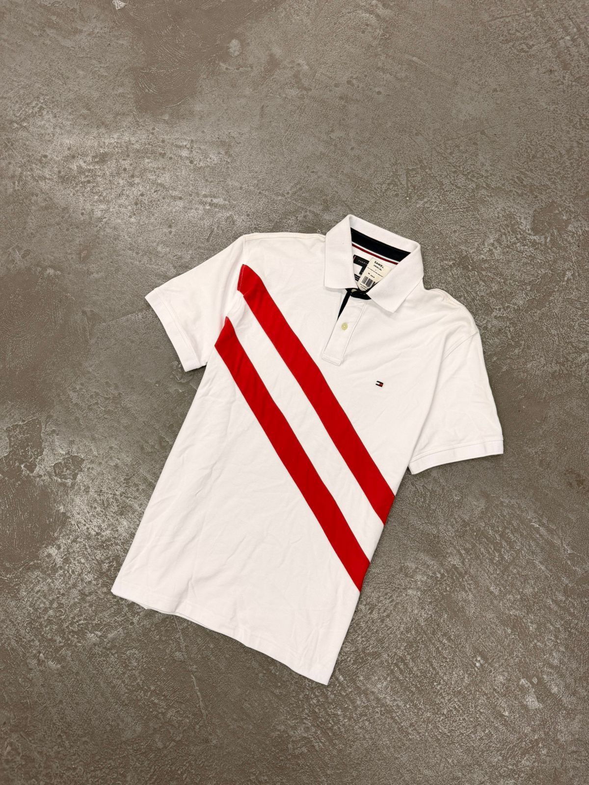 Polo Tommy Hilfiger Listras Transversais (Branca/Vermelha)